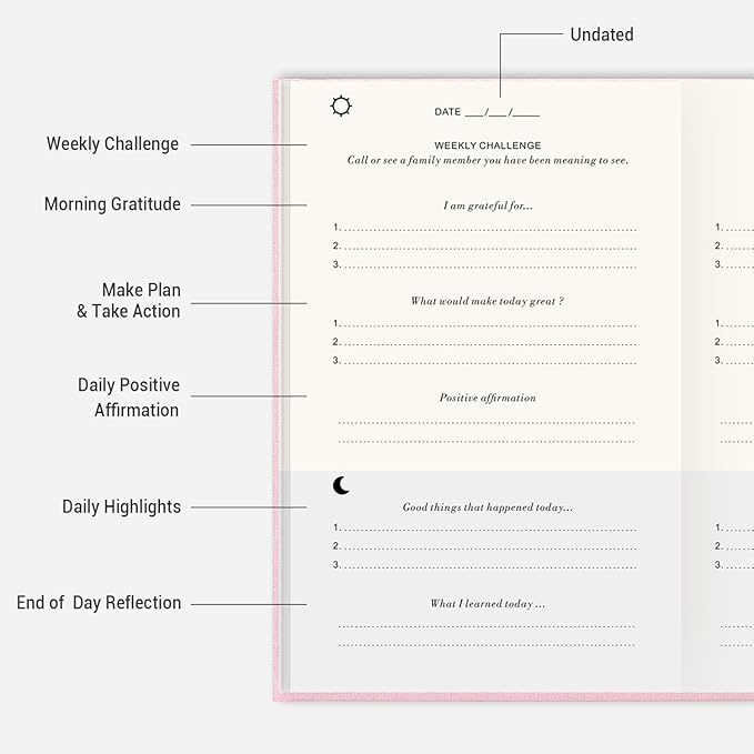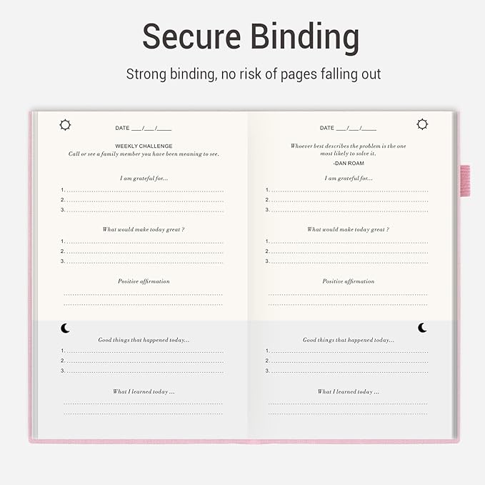 - Undated & Strong Binding- The inside of the daily journal is undated, which means you can start whenever you're ready! And it has thick pages and strong bindings, with no risk of pages falling out!