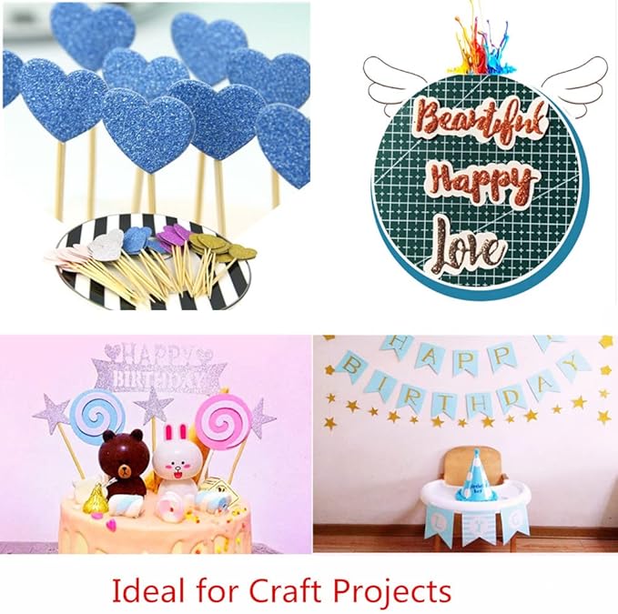 - Wide Application: The glitter cardstock can be easily applied with cutting machine to make cup cake toppers, greeting cards, party invitaitons,signs, scrapbooking, gift wrapping and much more.They are great for home decoration and all kinds of events decorating, such as wedding, birthday party, baby showers.