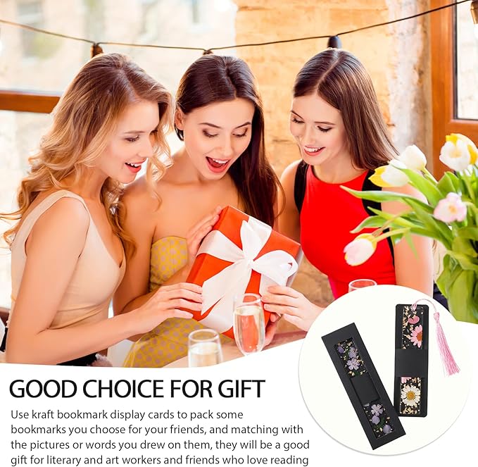50 Set Kraft Bookmark Sleeves Resin Bookmark Holder 5.9 x 1.8'' Bookmark Cardboard Gift Boxes DIY Bookmark Blank Display Cards for Bookmark Wrapping Gift Supplies(Black)