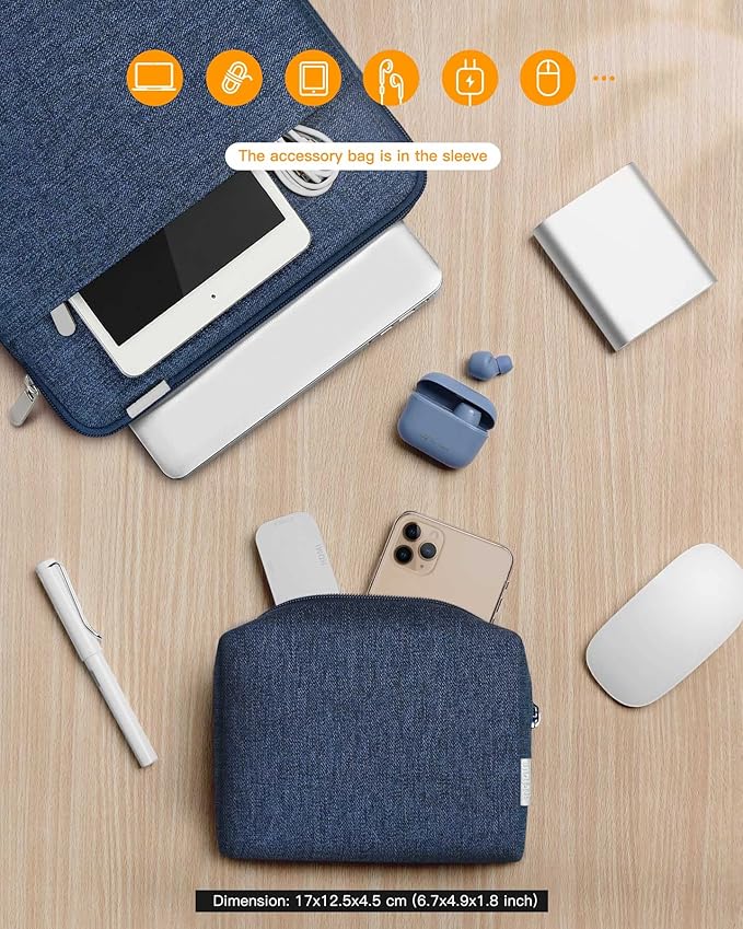 - Accessory Compartment: There's a zipped bag on the front which can facilitate storage of small items like keys, cables, cards, papers, and mouse. The accessory bag is in the sleeve.