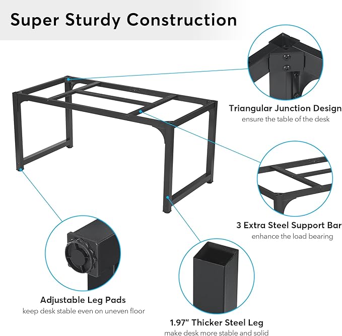 - [AJUSTABLE LEG PADS ]- Come with sturdy metal legs and adjustable leg pads, which make the desk keeping stable even on uneven floor