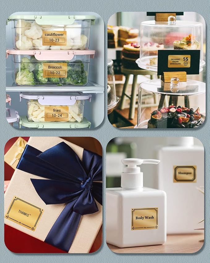 Phomemo Thermal Sticker Labels- 1.57"x1.18"(40x30mm) Thermal Label for M110/M221/M220/M120/M200, for Barcode/Address/Mailing/Logo/Business/Home Tag, Black on Golden