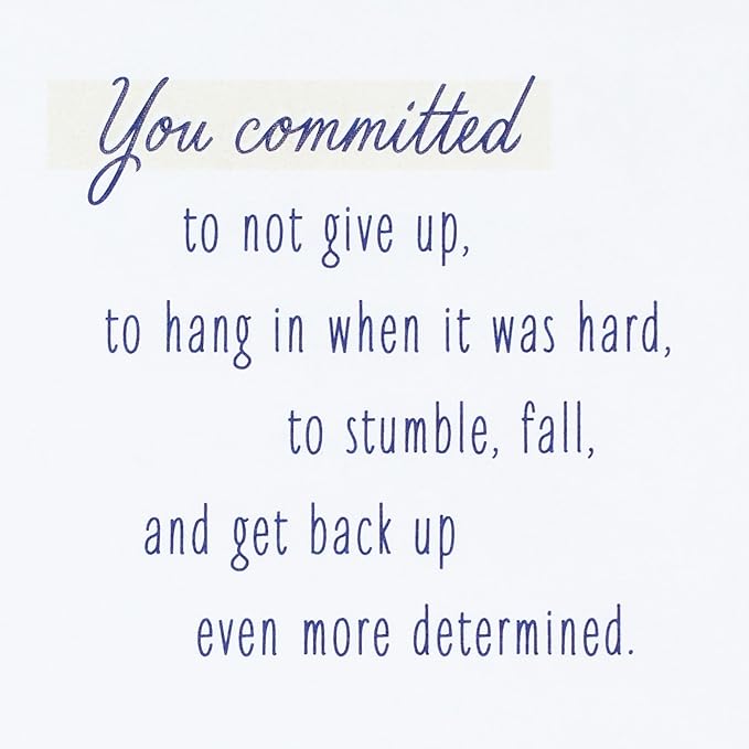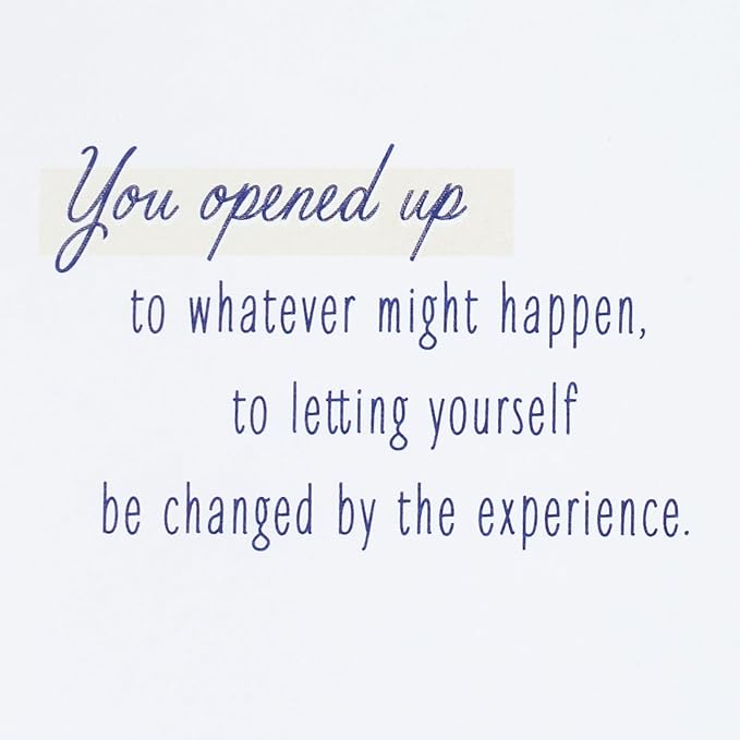 - Inside reads: "You committed to not give up, to hang in when it was hard, to stumble, fall, and get back up even more determined. You opened up to whatever might happen, to letting yourself be changed by the experience. And you inspired all along your journey, in so many ways. Congratulations."