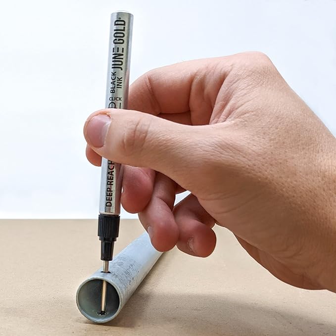 - INCLUDED: This set includes 2 blue permanent deep reach markers, 2 ink refill bottles, and 2 replacement tips all stored in a sturdy reusable case. Also called long reach / nib / nose marker.