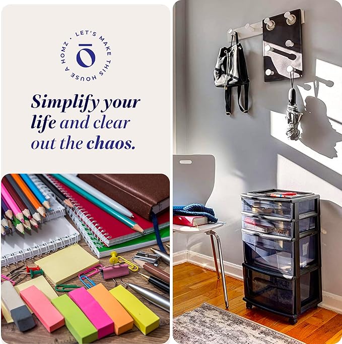 - Plastic Drawer Storage Cart: Perfect the art of hiding your chaos with the HOMZ rolling storage cart set. This plastic cart with wheels is made to fit anywhere you need organizing power, whether at home or work.