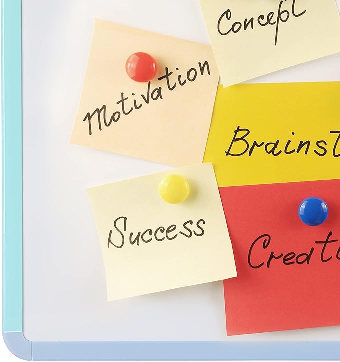- The sleek design of this colorful framed board allows it to fit seamlessly into any modern office or school setting while providing the perfect canvas to jot down reminders, thoughts, or ideas.