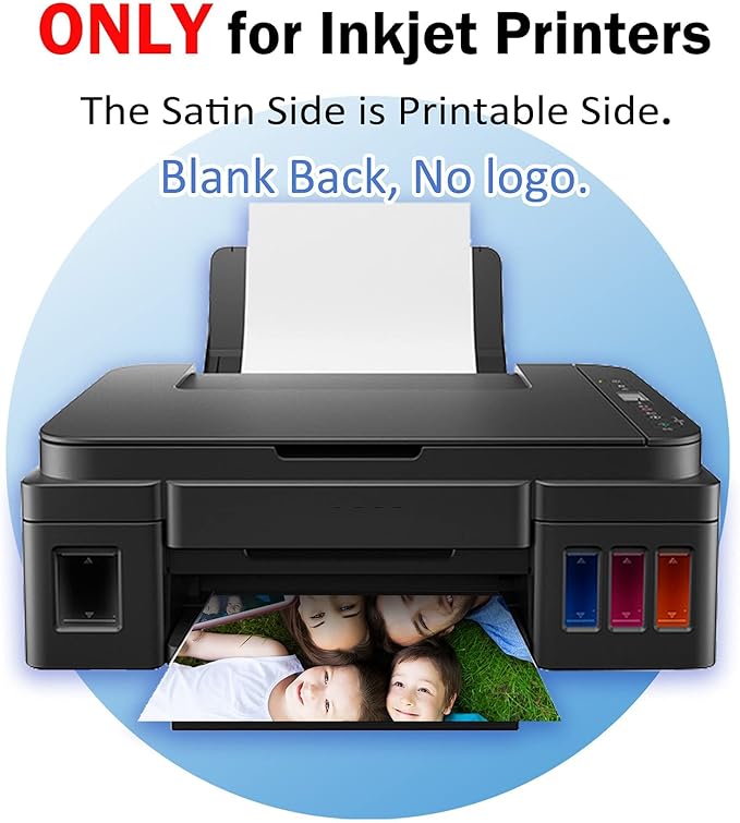 - Single-sided printable photo paper. Only the side with satin texture is the printing side. Recommend printing with 'Paper Type' set to 'Photo Paper' to get beautiful photo projects