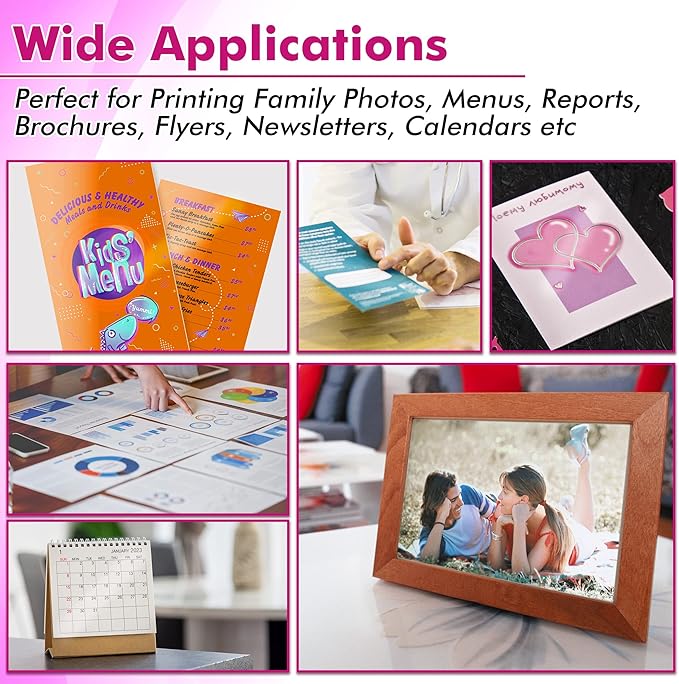 - Perfect ideal for printing your photos and designs. Use for Printing Family Photos, Menus, Reports, Brochures, Flyers, Newsletters, Calendars etc. No watermark on the back, leaving you to record or write