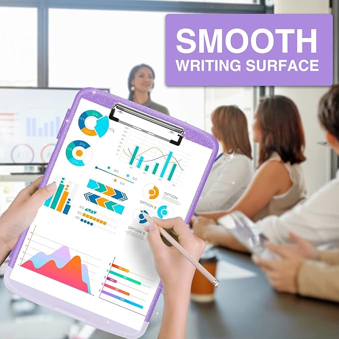 - Cute Glitter Design & Transport Safely : Say goodbye to monotonous traditional clipboard, our glitter style make your work, study and life more attractive while giving you the reliable functionality. Compared to other packaging using opp bags, we use the strong carton packaging to ensure that the parcel arrives safely.
