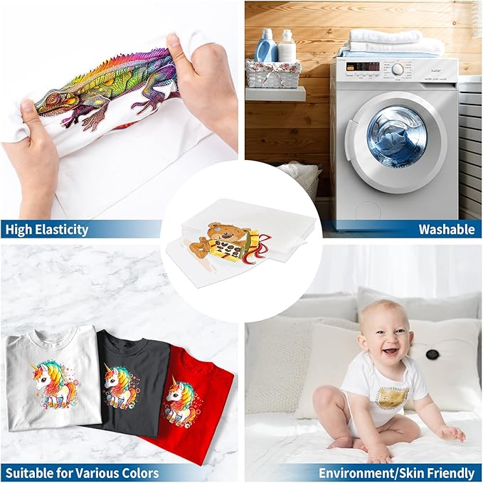 - 【Easy to Use & Anti-static】The dtf film does not require pre-treatment, only 5 steps are needed to complete your creation: Mirror print, shake powder, melt the powder, heat press and cold peel. The print side has non-static coating so there is no residue after shaking powder.