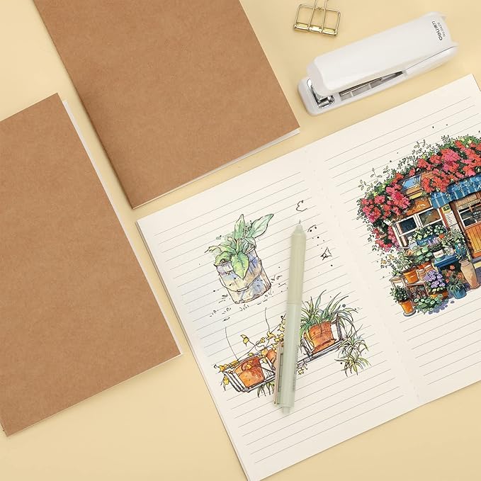 - 【Package Contains】16 pack A5 college ruled line paper with kraft paper cover, 60 pages / 30 sheets and 80gsm paper.