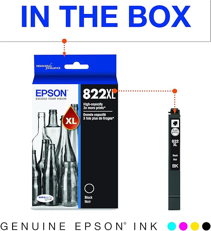 Epson® Workforce® Pro WF-4820 Wireless Color Inkjet All-in-One Printer & EPSON T822 DURABrite Ultra Ink High Capacity Black (T822XL120-S) T822 DURABrite Black