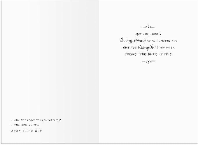- Each inspirational sympathy card features a comforting sentiment with Scripture from the Bible.