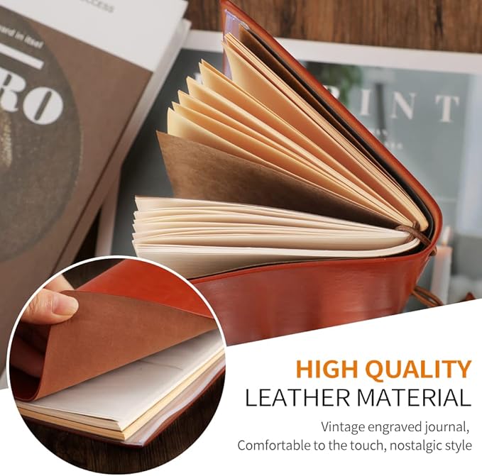 - 【Vintage Leather Material】Vintage leather journal covers are made of PU leather material, which is not easy to damage and can effectively protect the paper inside from wrinkling. The sturdy double-line binding design keeps the leather journal fastened from falling off easily. Leather cover size:7.9*4.7inch,