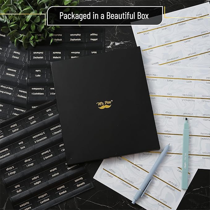 - Elevate your scripture study with Mr. Pen Catholic Bible tabs, available in two elegant color sets: timeless white and gray, and classic black. These tabs blend seamlessly into your Bible, adding a touch of sophistication to your spiritual journey.