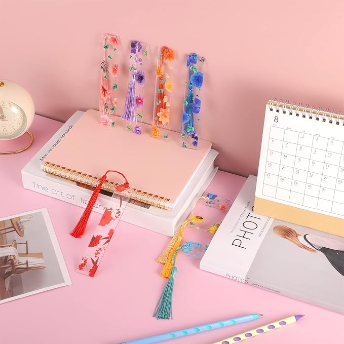 20 Pieces Flower Resin Bookmark Transparent Floral Bookmarks for Women Cute Bookmarks Flower Page Marker with Tassels Graduation Gifts for Women