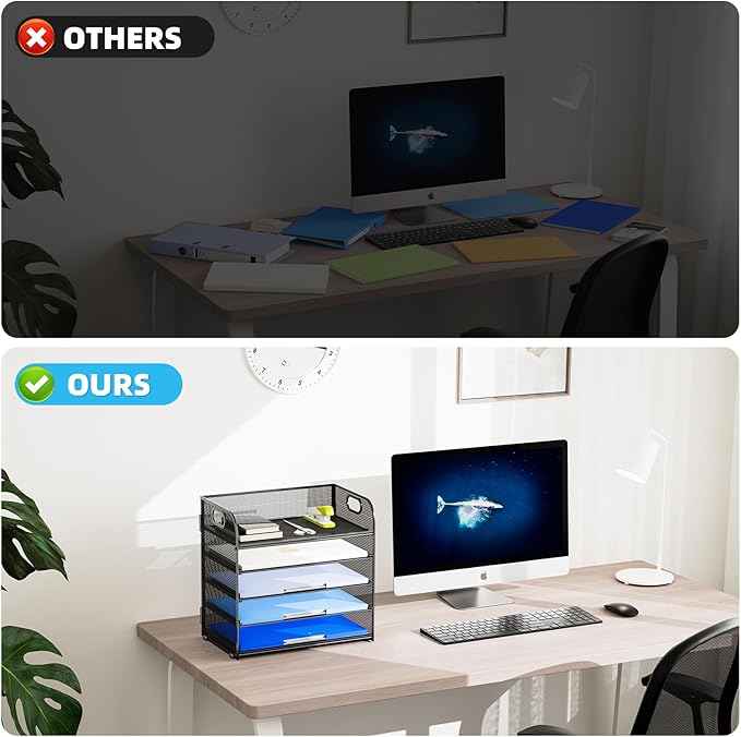 - 【PREMIUM QUALITY】The mesh desktop file organizer is made of lightweight durable metal mesh and reinforced with a solid steel frame that makes it have long-lasting strength and reliable performance.