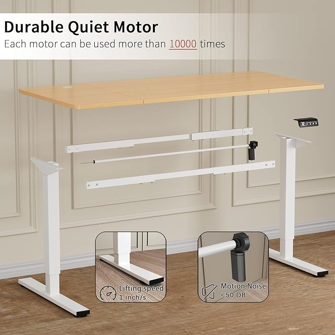 - 【Durable Quiet Motor】The motor is made of good quality and each has been tested more than ten inspection processes before pre-assembling to the desk. You can adjust the height between 28.7~46.4 inches at a speed of 1"/second with low noise (under 50DB). This standing desk uses an advanced motor with longer service life, each motor can be used more than 10,000 times and durable enough of 2 years daily use.