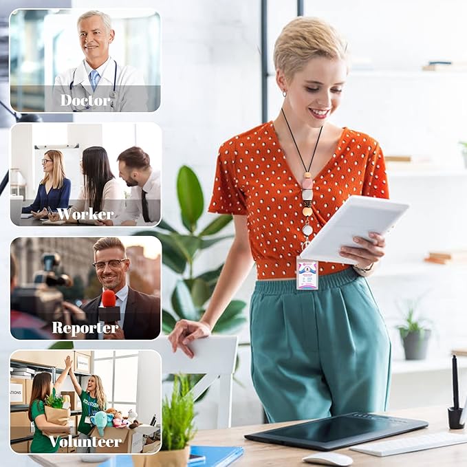 - 【Material】Beaded lanyard is made of high-quality wood, the beads are beautiful in color and texture, and can be matched with different outfits; the rotatable buckle that connects the badge holder is made of high-quality alloy, which is durable.