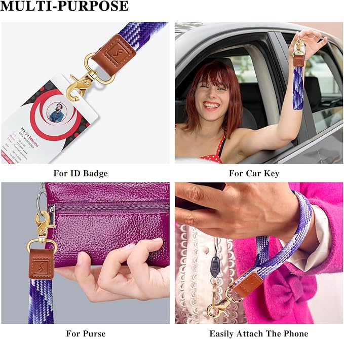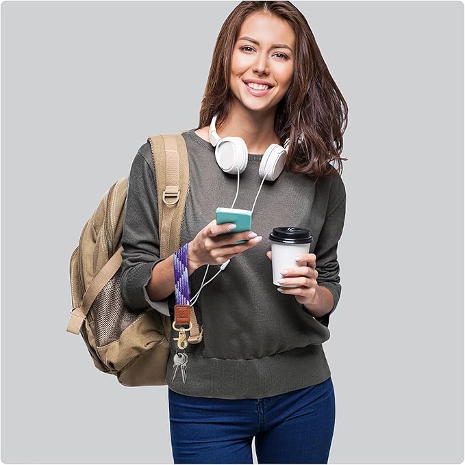 - Excellent Materials: Our wristlet key lanyard is light and strong, not easy to break or fade, and can provide you with a long-lasting user experience.This wristlet keychain for women is made with braided nylon and genuine leather is skin-friendly, has a quality zinc alloy metal wristlet strap key loop make it more solid and sturdy, can maintain long-term use to keep your wrist lanyard for keys, ID badge, or other essentials secure,suitable for long time wear