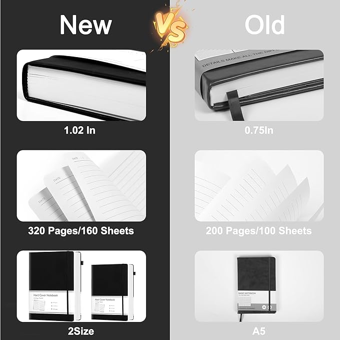 - 320 Pages Paper - Lined journal with 320 pages provides you with enough writing space. A5 notebook with 100gsm paper, thicker than normal paper, will not cause bleeding, ghosting or smudging and is suitable for most types of pens.