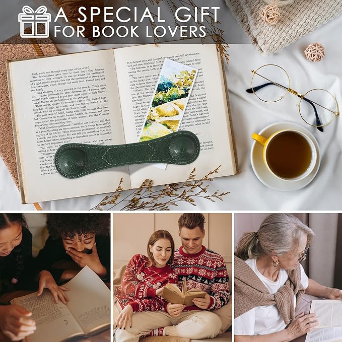 KINIVA Leather Weighted Bookmarks Book Weight Page Holder for Reading,Book Open Holder for Kids Adult,Gifts for Reader (01 Green)