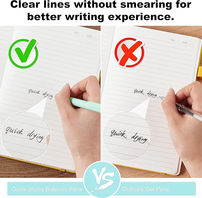- SMOOTH WRITING & QUICK DRYING: The optimized ballpoint with premium ink delivers skip-free glides all the time. High quality ink dries quickly, so there will be no smearing or bleeding during writing.