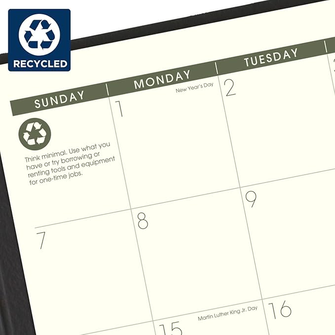 - RECYCLED MATERIALS - Make an environmentally conscious choice with a planner made from post-consumer waste recycled materials. This planner features 100% recycled paper and a 50% recycled cover.