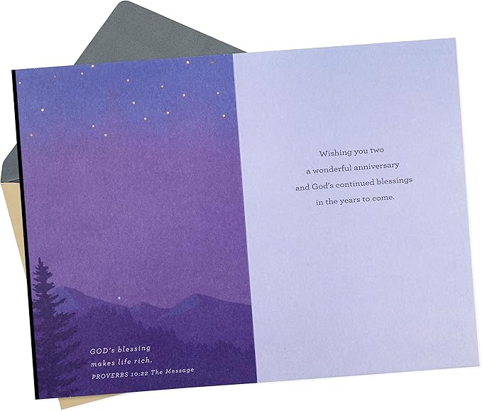 - Inside reads: "Wishing you two a wonderful anniversary and God's continued blessings in the years to come."
