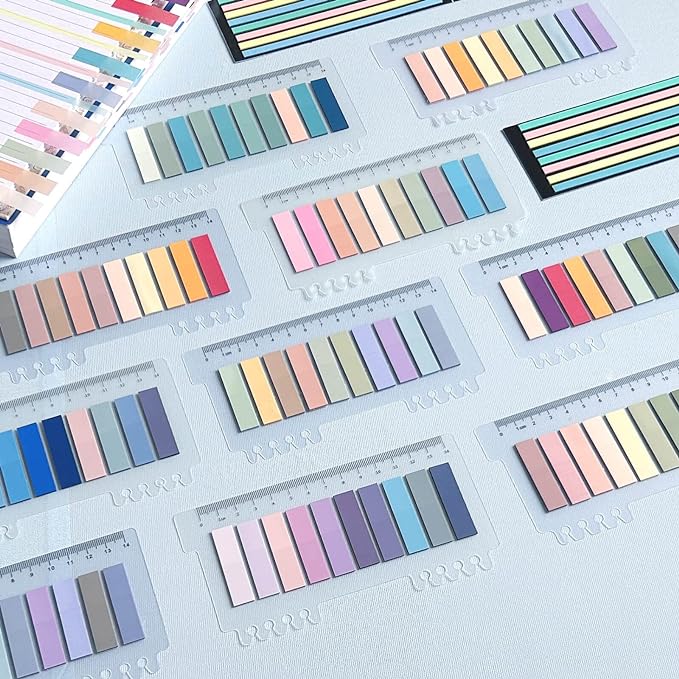 - Mega-Value Set of Book Tabs: 12 sets of 2320 pieces Morandi book tabs for annotating books( 10 sets sticky tabs with ruler+ 2 sets transparent highlighter tape), Numbers of popular colors can help you find and locate information quickly, and organize categories by color flexibly, keeps you organized for work