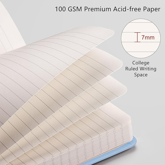 - LINED JOURNAL NOTEBOOK: RETTACY Lined Journal Notebook comes in a A5 (5.7'' × 8.3'') size, 192 Numbered Pages, waterproof and smooth Leather Hardcover, 7 mm college ruled writing space, 100 GSM Thick Acid-free Paper, Pen Holder, Elastic Closure Band, 2 Ribbon Bookmarks, Inner Pocket, Sticky Notes