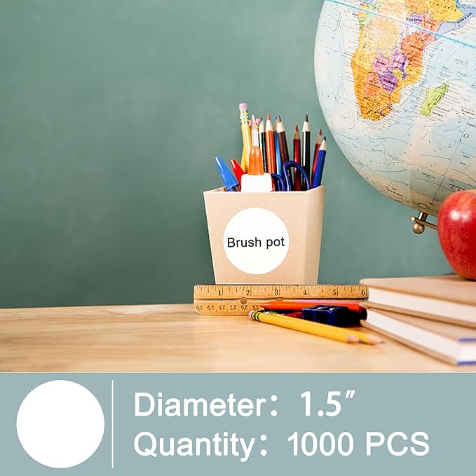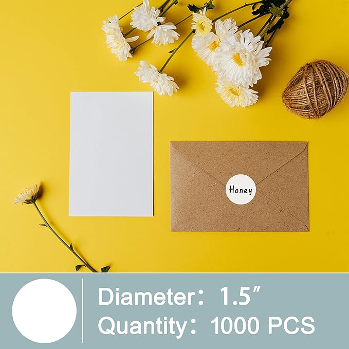 Hybsk 1.5 inch Circle Color Direct Thermal Stickers Shipping Labels for Barcodes,Name Tag,DIY Logo Design,Inventory– Compatible with Zebra,Rollo,Munbyn,and More-1000 pcs (1.5 inch,White)