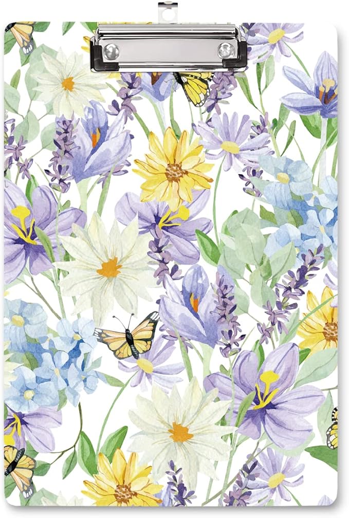 WAVEYU Cute Hardboard Office Clipboard, Clipboard with Low Profile Clip Designed for Students Classroom School and Office Use(12.5"x9"), Yellow Flower