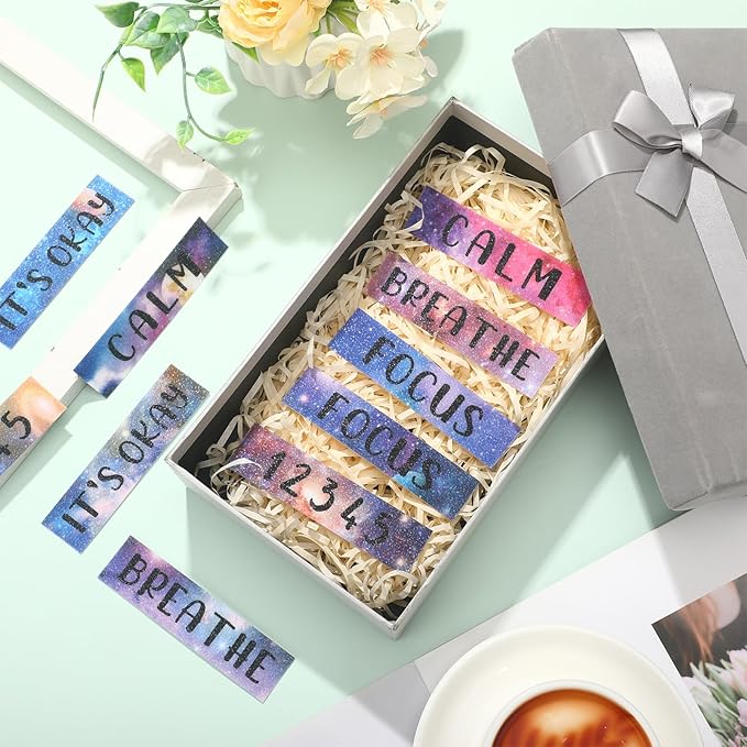 - Beautiful Phone Decoration: adopting pastel colors and multiple words like [CALM], [FOCUS], [BREATHE], etc., the stress stickers can be stuck on the back of your phone as a beautiful phone case decoration, easily catching the eyes of others
