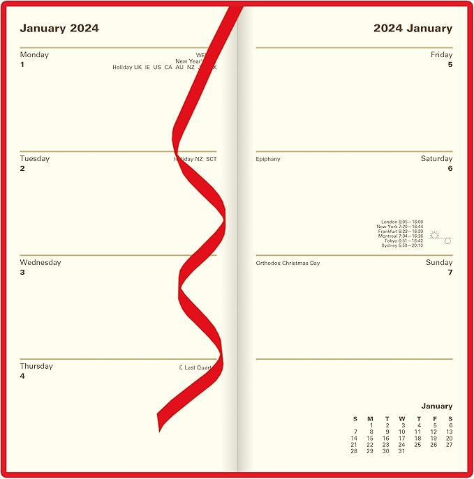 - Classic Diary Style, designed for ease of use, making it simple to plan ahead to create the perfect set up and satisfy any agenda. Bonus content pages include: personal information, calendar, international information, notable dates, religious festivals, useful conversion tables, yearly planners, holiday planner, key events planner, world maps, cash account, clothing sizes, gift and zodiac information (not all contents are included in all sizes)