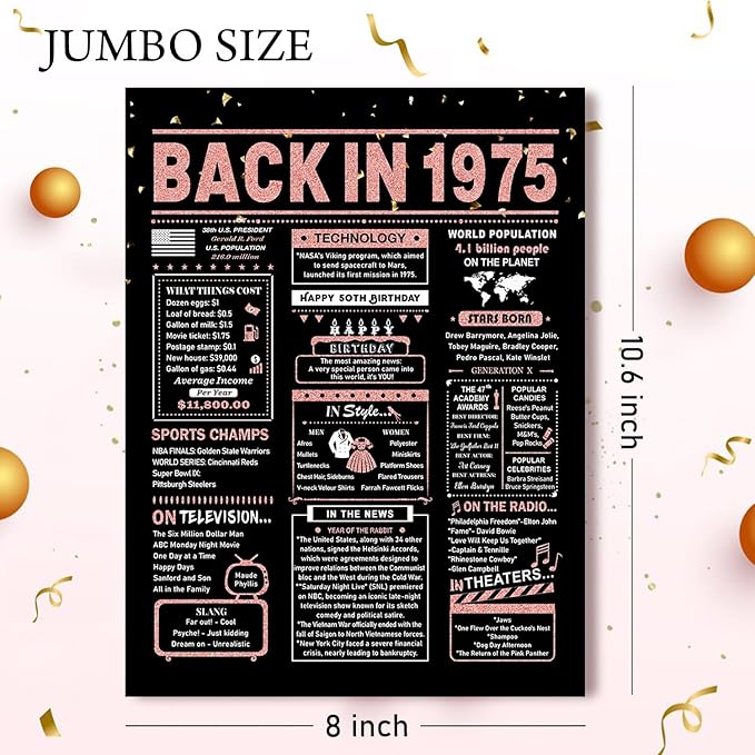 50th Birthday Card, 50th Birthday Gifts for Women, 50th Birthday Decorations for Her, Back in 1975 Birthday Card, Rose Gold