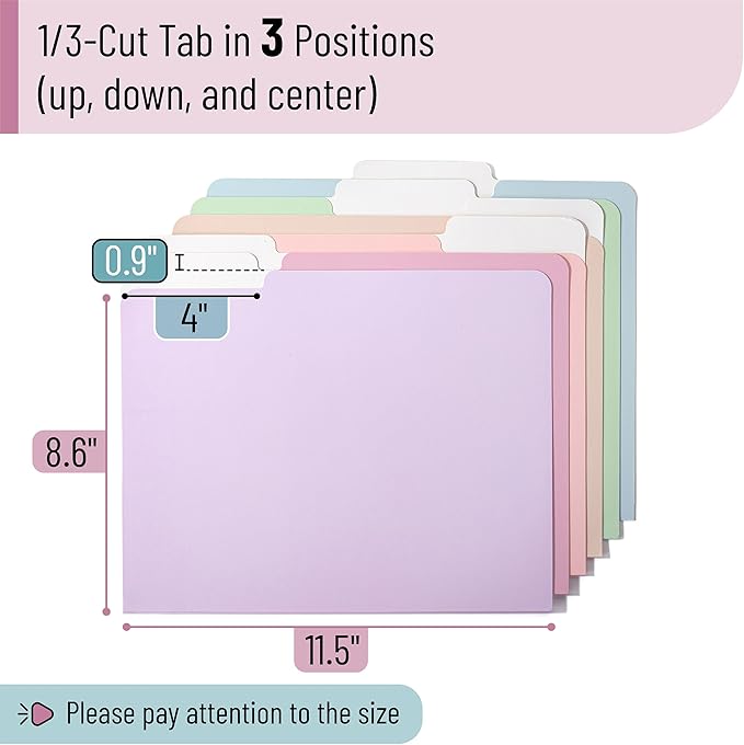 - Keep organized and effortlessly identify your documents with a 1/3-cut tab system in three distinct positions. Simply add custom labels to locate anything you need quickly!