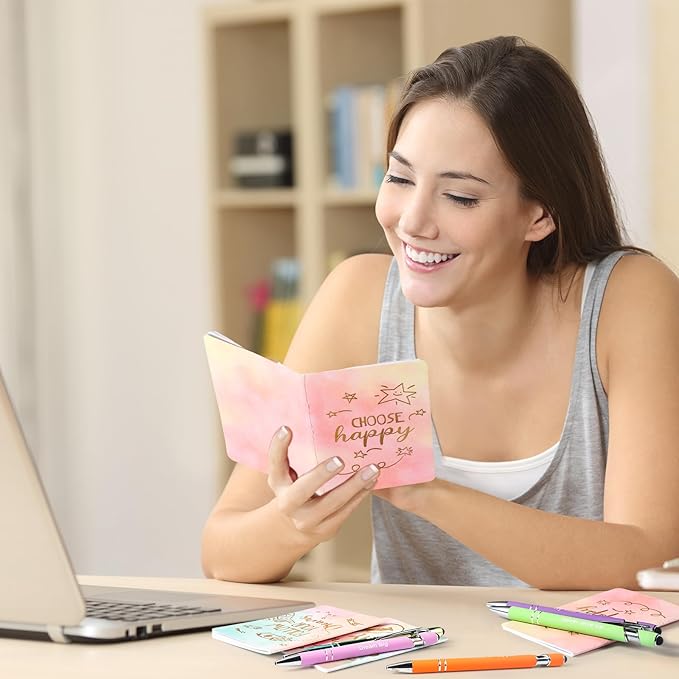 - Motivational Gift Set: the package comes with 32 pieces of inspirational gifts, including 16 pieces of inspirational pens in 8 different colors and 16 pieces of inspirational mini notebooks in 8 watercolor design, enough amount can meet your various needs