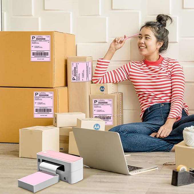 Phomemo 4X6'' Thermal Shipping Labels - Pack of 100 4x6 Fan-Fold Labels for Shipping Labels, Address, Mail, Product Logo Labels, Commercial Grade, Pink