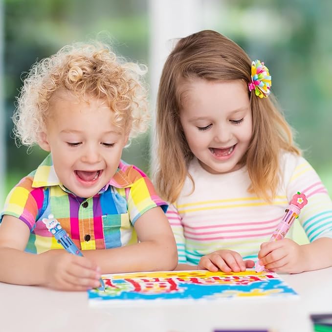 Multicolor Ballpoint Pen 0.7 mm, 10-in-1 Colored Pens Fine Point Retractable Cute Cartoon Ballpoint Pens for Office School Supplies Students Kids Gifts, 6 Pack