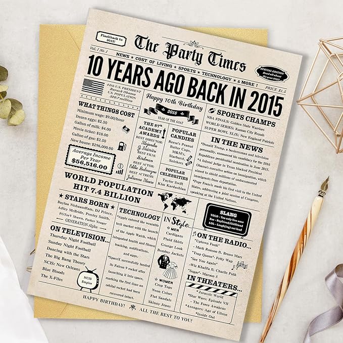 10th Birthday Card, 10th Birthday Decorations for Girl Boys, 10th Birthday Gifts for Daughter Son, Back in 2015 Birthday Card
