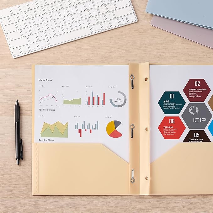 - Designed with two spacious pockets and a trio of center prongs, these folders facilitate both loose and bound document storage, ensuring effortless organization and accessibility of papers.