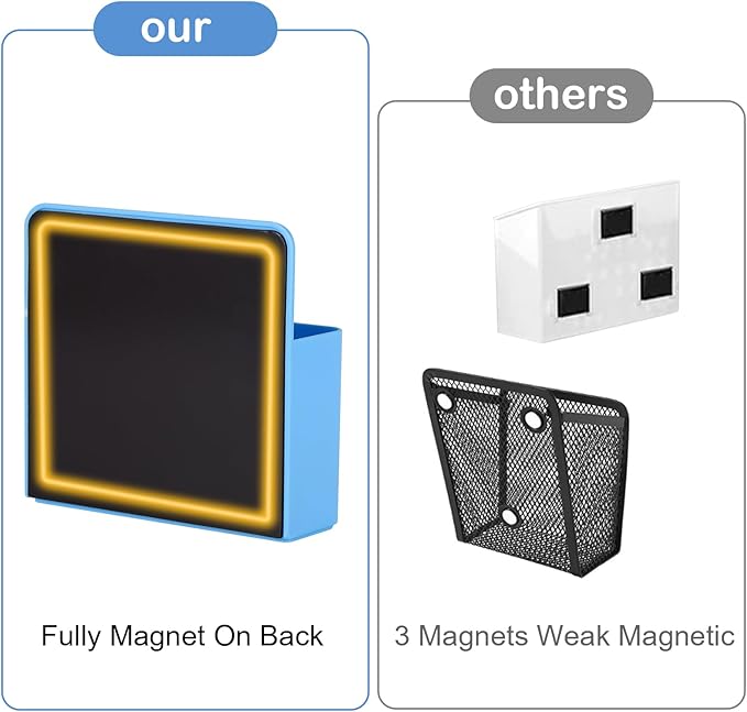- Extra Powerful Magnets:A strong magnet is fixed into the whole back of this pencil holder. Dry erase marker holder could securely attach to any metal surface without sliding and falling.However, it ONLY fits for metal surface, not suitable for glass board or plastic board.