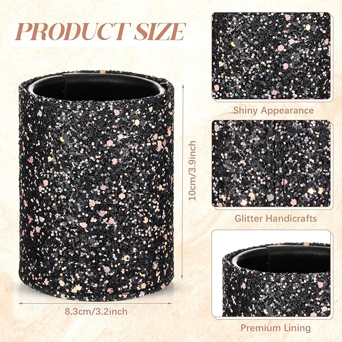 - Broadly Applicable: the black pencil holder can be utilized as a delicate decoration for your desk, office and home; It can be applied as a pen holder as well as a makeup brush holder to help you put away some small things; Bling black pens are suitable for journaling, taking notes, signing, weddings, bridal shower and various parties, or writing down daily reminders and schedules