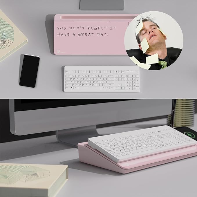 - The TOWON Desktop Glass Whiteboard with Wireless Charger Station is a versatile and innovative desk accessory designed to enhance productivity and organization while keeping your devices charged. Measuring 17 x 6 inches, this pink-colored whiteboard offers a sleek and modern look that adds a touch of style to any workspace