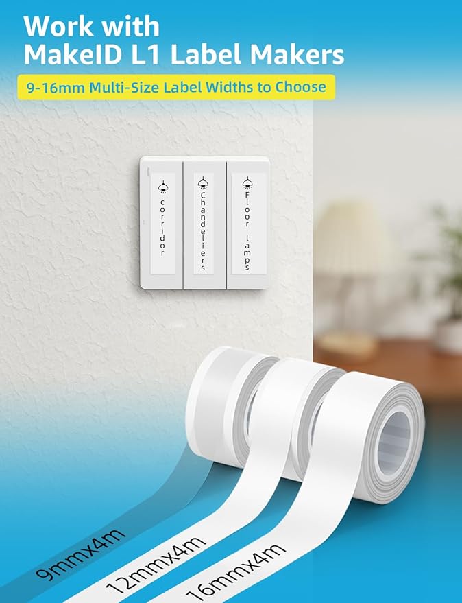 - Print More Labels - This label tape refill is compatible with MakeID L1 Q1 label makers. Each roll measures 13' long, giving you more than enough paper to use for labeling your essentials.