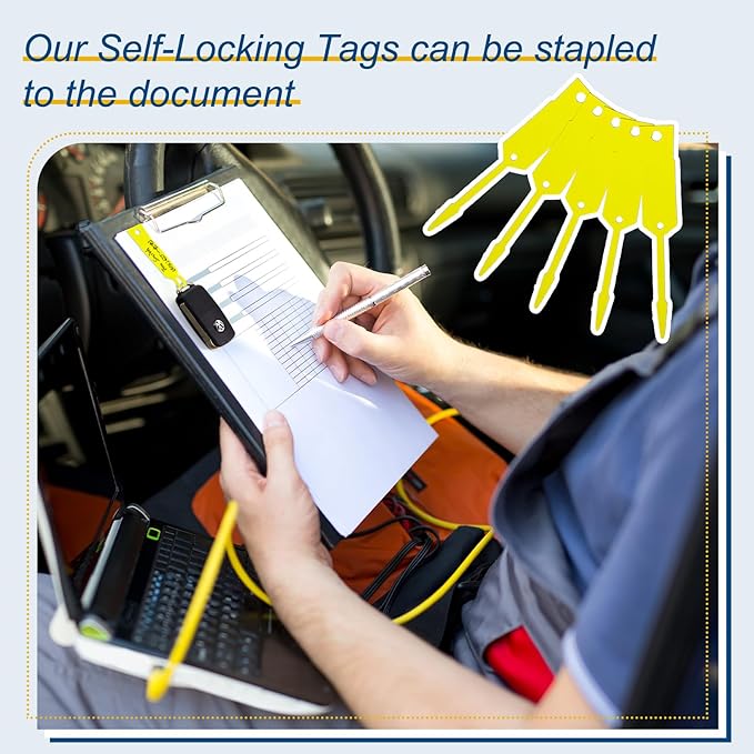 Lewtemi 1000 Pieces Self Lock Arrow ID Key Tags Car Parts Tags Key Ring Repair Labels for Office Automotive Shop Supplies(4 1/2'' X 3/4",Yellow)