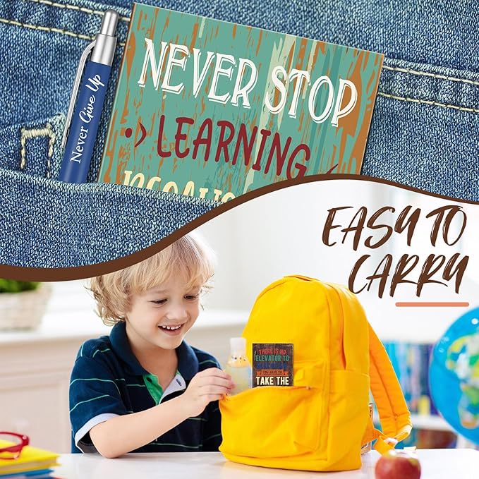 - Portable and Adorable: measuring approx. 3.35 x 4.72 inches/ 8.5 x 12 cm, our motivational notepads are lightweight and compact, small in size yet provides enough space to write your notes; The inspirational pens are about 5.51 inches/ 14 cm long, you can put the inspiring notebook and pen set in your handbag or carry them around, will not take up much space for you