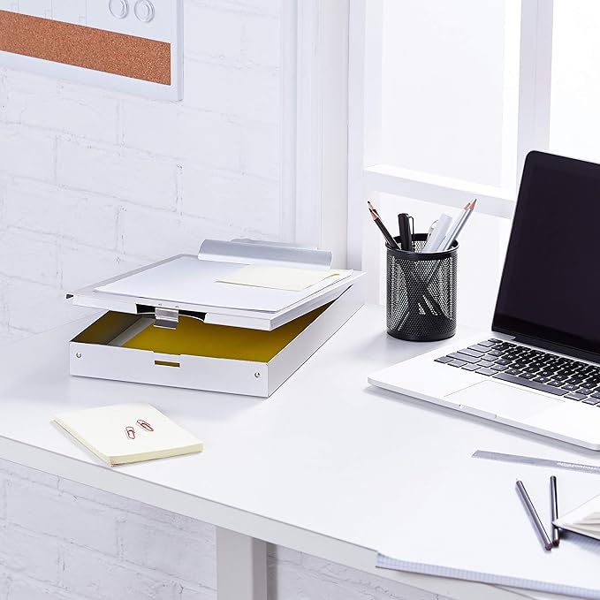 - Includes a clipboard with 2 interior storage compartments and a self-closing latch
