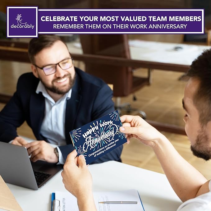 - CELEBRATE WORK MILESTONES - Commemorate your colleague's incredible journey with 24pcs blank workiversary card in fireworks designs that highlight their accomplishments over the past year. Make it memorable with a happy work anniversary card.